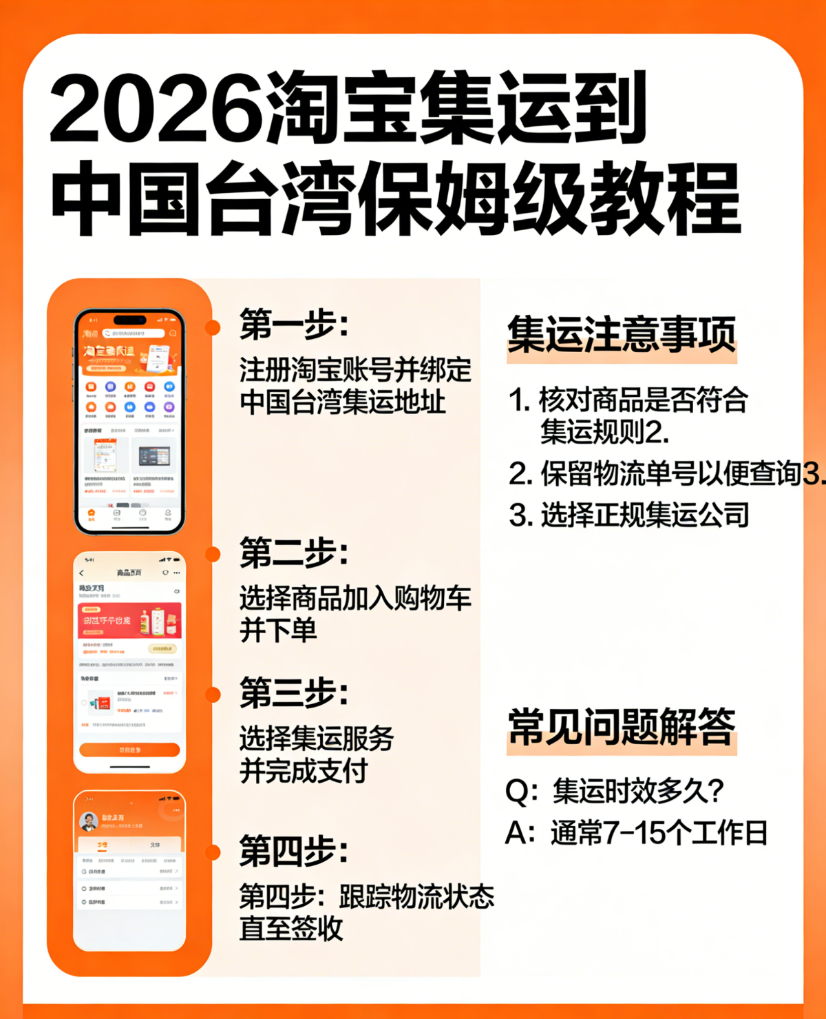 2026 最新淘宝集运到台湾保姆级教程,零基础新手也能轻松学会!覆盖淘宝下单、集运仓填写、合包转运、清关派送全流程,解决大陆寄台湾物流难题,一站式搞定台湾集运。淘宝集运台湾零基础教程,详细讲解大陆网购寄台湾流程、集运操作步骤与清关注意事项,新手一看就会。淘集运专线直送台湾,台湾集运,中国商品代购!