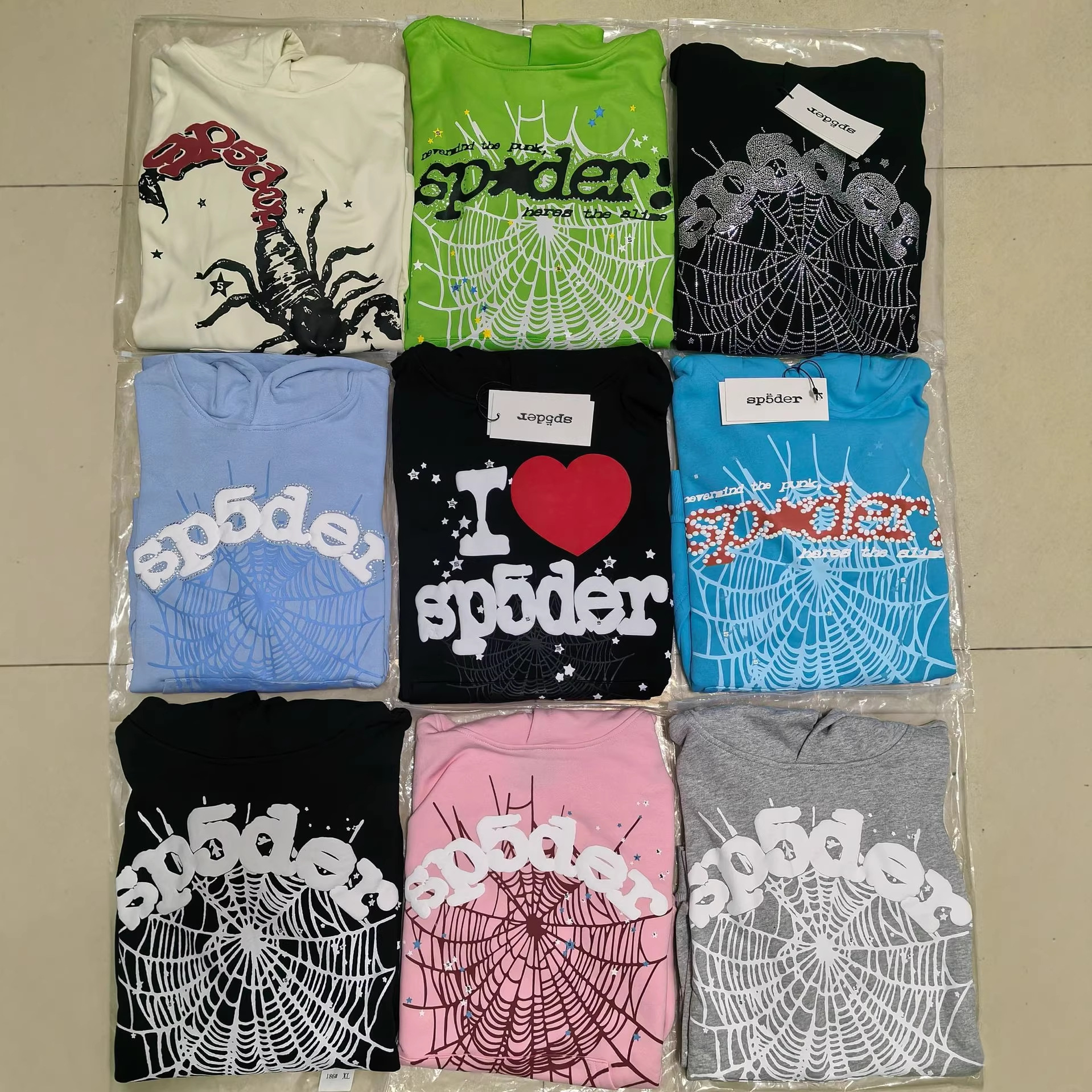 歐美潮牌海外版重磅連帽衫潮流情侶蜘蛛網Sp5der毛圈衛衣現貨批發